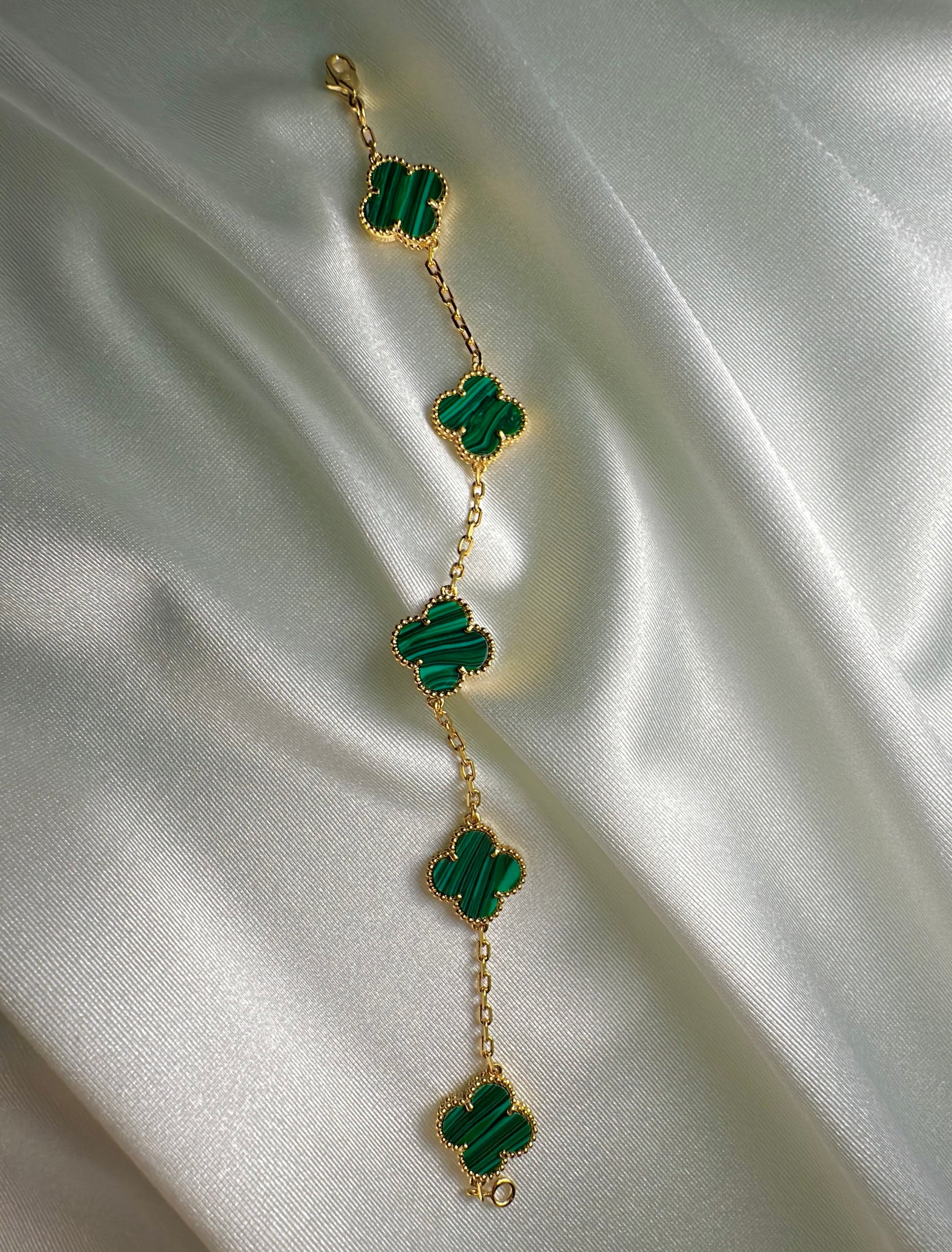 צמיד תלתן - ירוק - ציפוי זהב 18 קראט