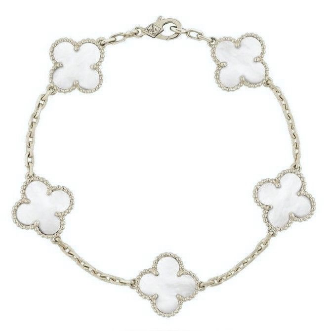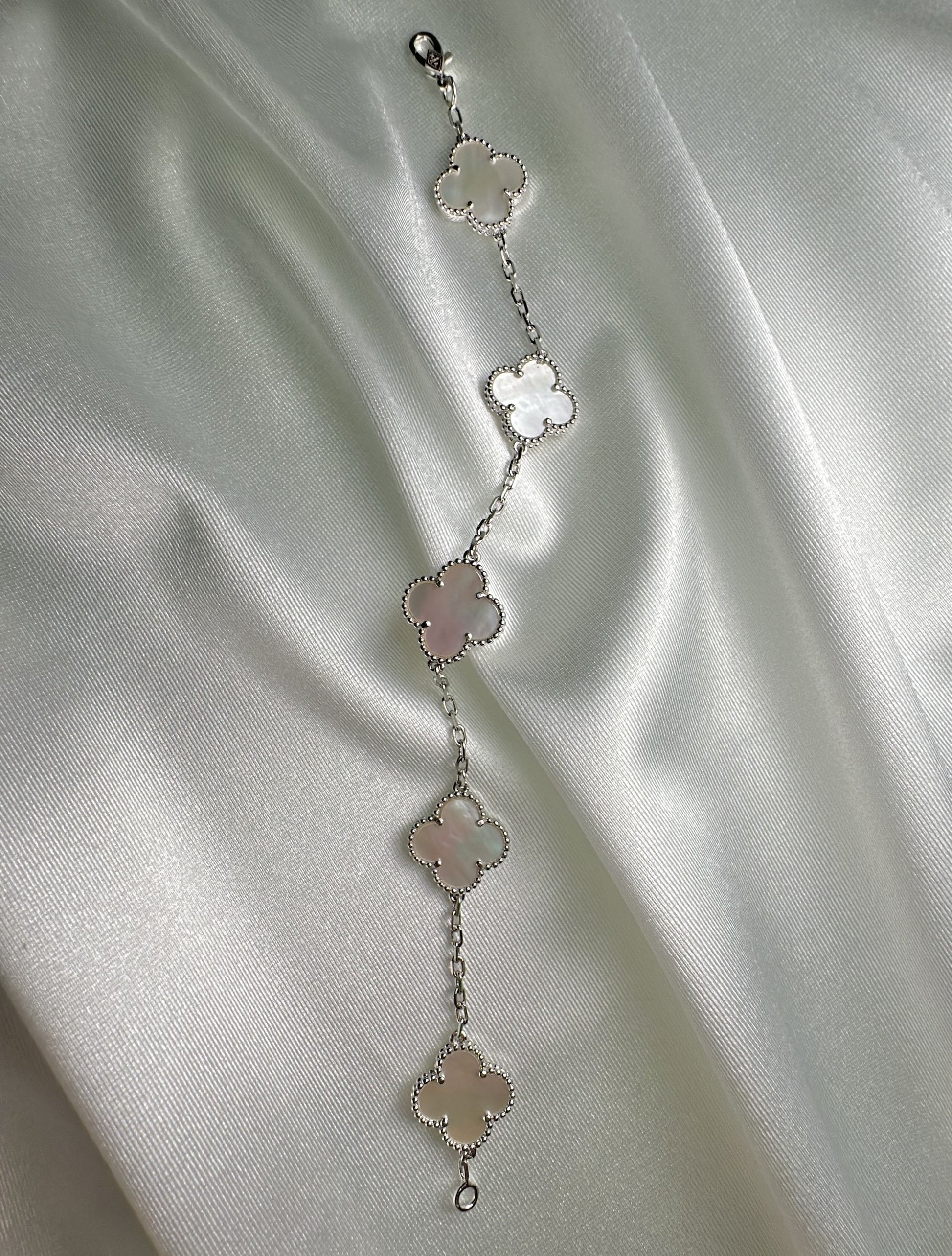צמיד תלתן - לבן פנינה - ציפוי כסף 925