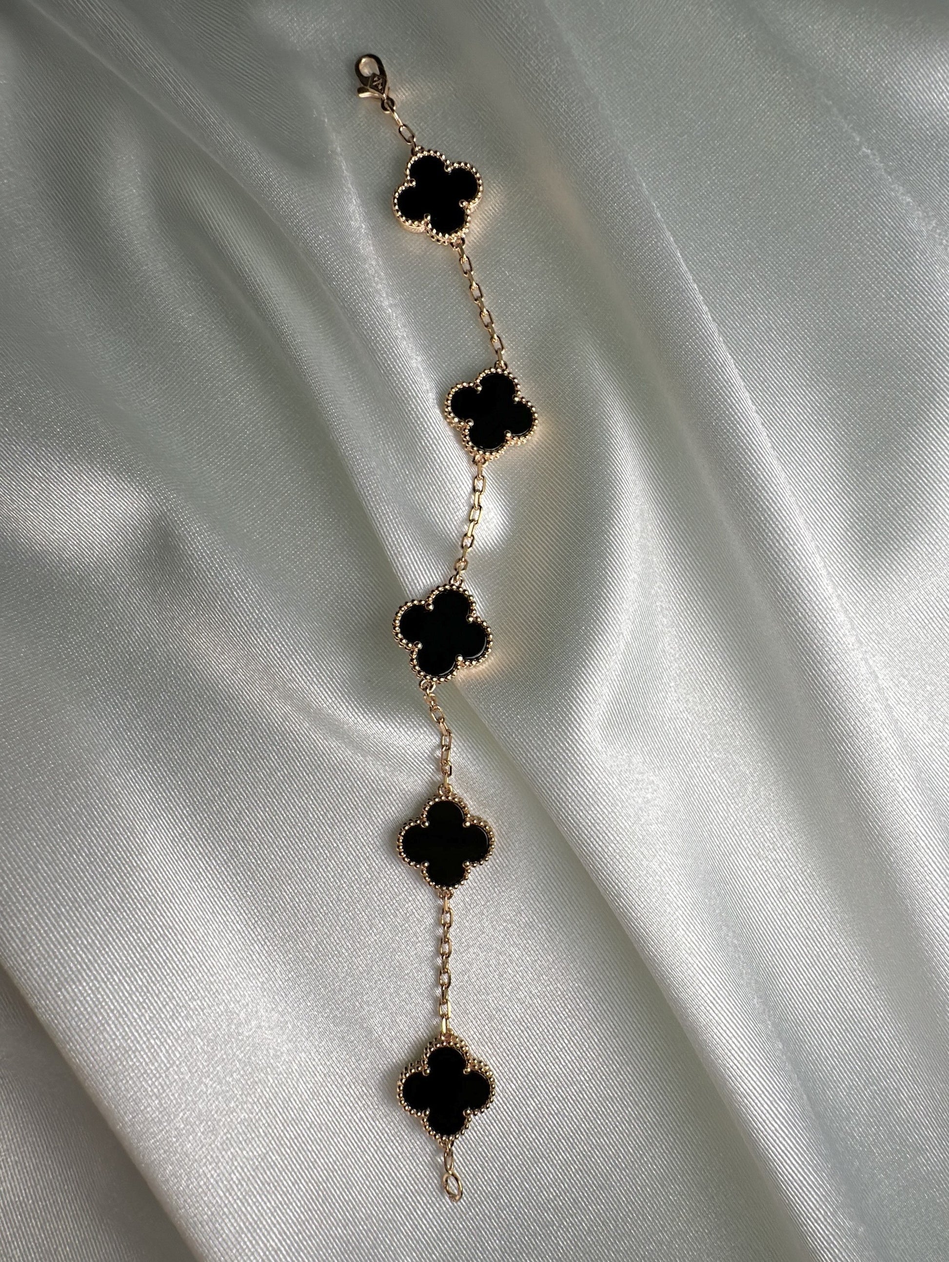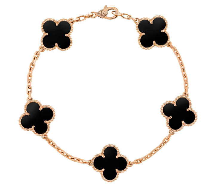 צמיד תלתן - שחור - רוז גולד - ציפוי זהב 18 קראט